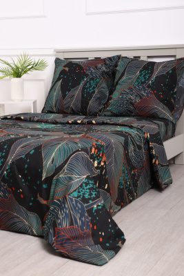 Комплект постельного белья Черное Зеленое полисатин